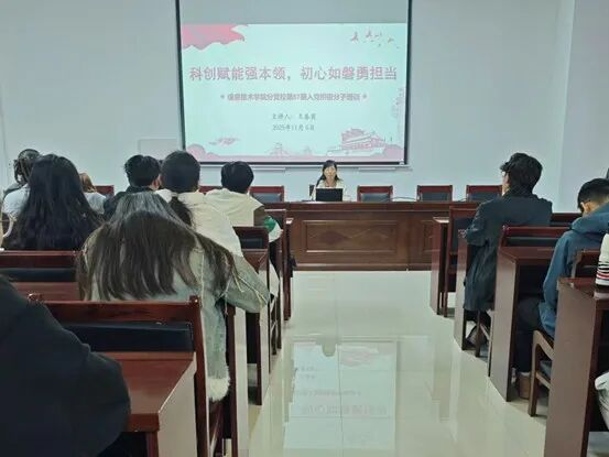 11月6日,m88官网分党校开展以“科创赋能强本领,初心如磐勇担当”为主题的党课培训,本次培训由院长王春霞主讲,党建组织员吴楚和第57期入党积极分子参加。