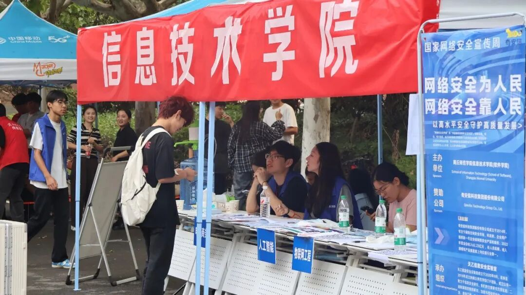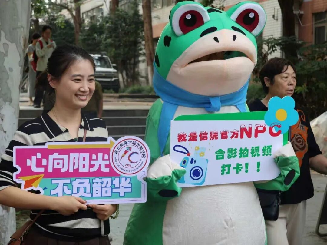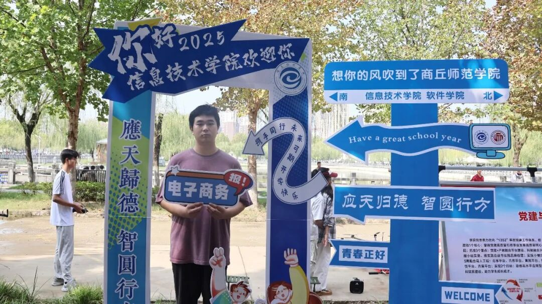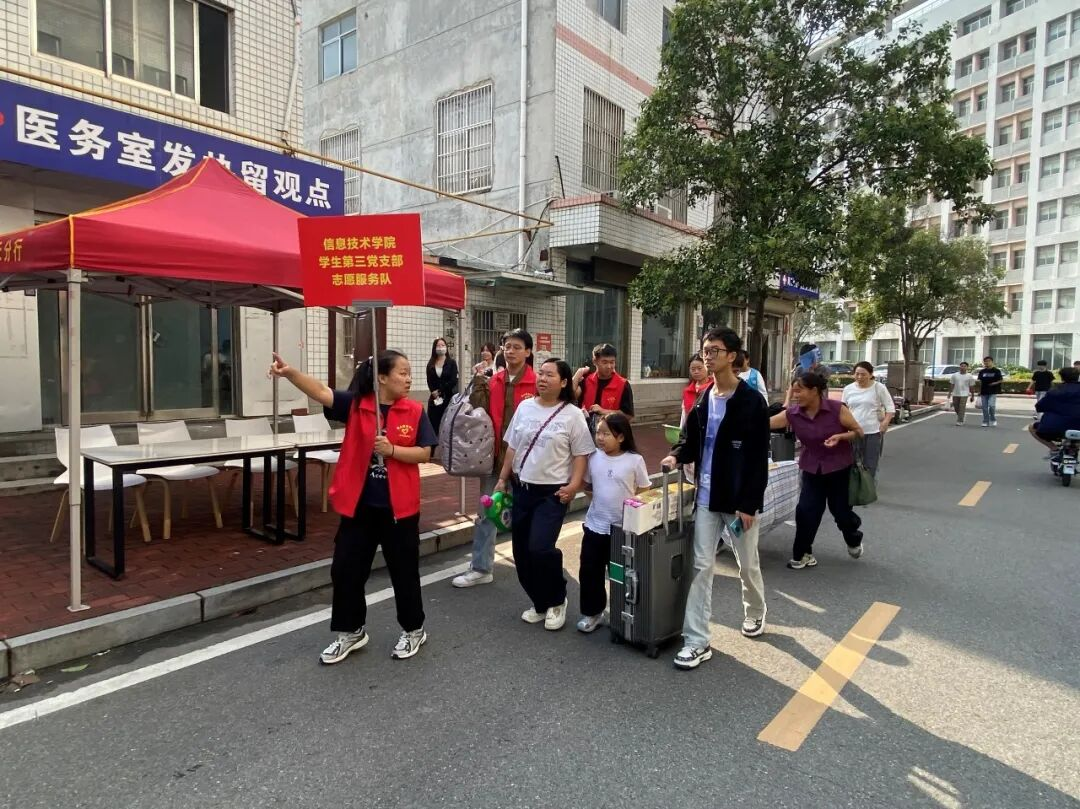 迎新点前,早已等候多时的领导老师和志愿者们,用最温暖的笑容和最热情的问候,迎接小萌新们的到来。每一声问候、每一次伸手、每一件行李的传递,让小萌新们真正感受到了来自“信息人”的第一份温暖。
