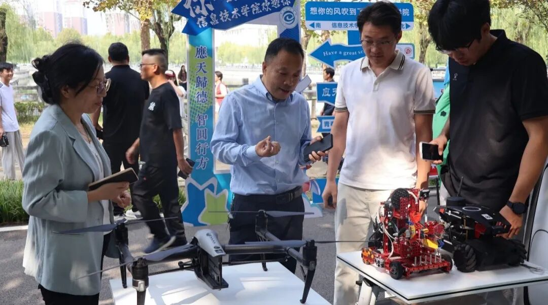 迎新现场不仅有热情的服务,还有满满的“科技感”。智能小车、无人机展示、AI机器人……各类科创成果精彩亮相,吸引了许多员工和家长驻足体验,也让小萌新们对接下来的大学课程充满了期待。