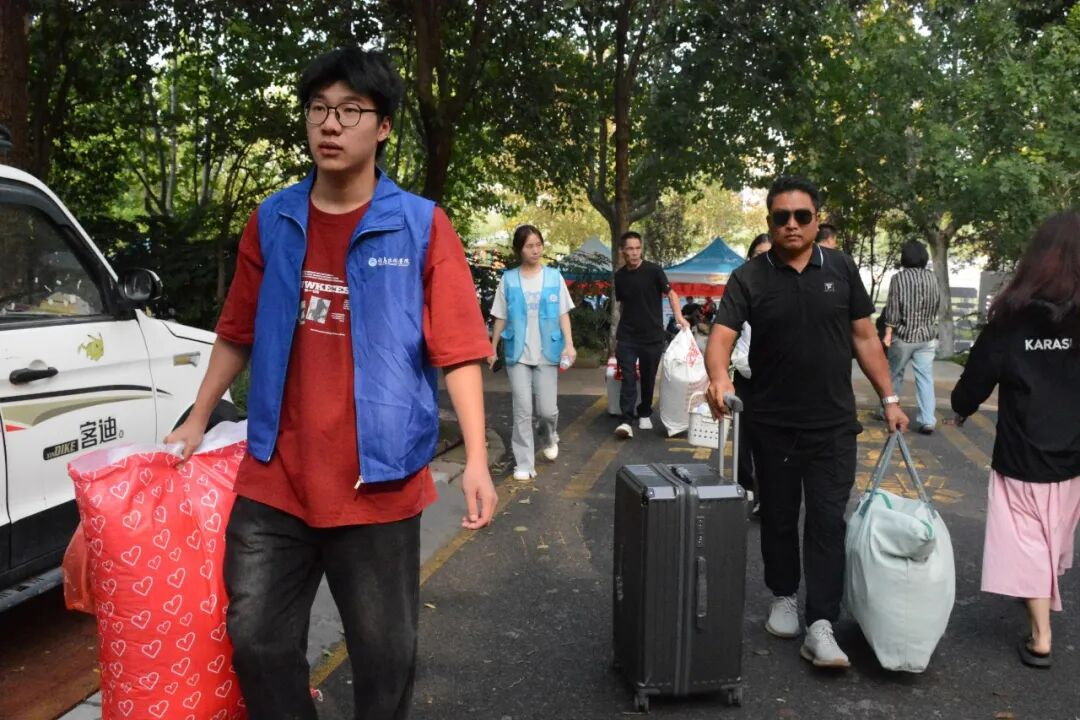 忙碌之余,小萌新和家长们纷纷拍照留念,他们脸上洋溢的笑容是对所有迎新人员最好的肯定。