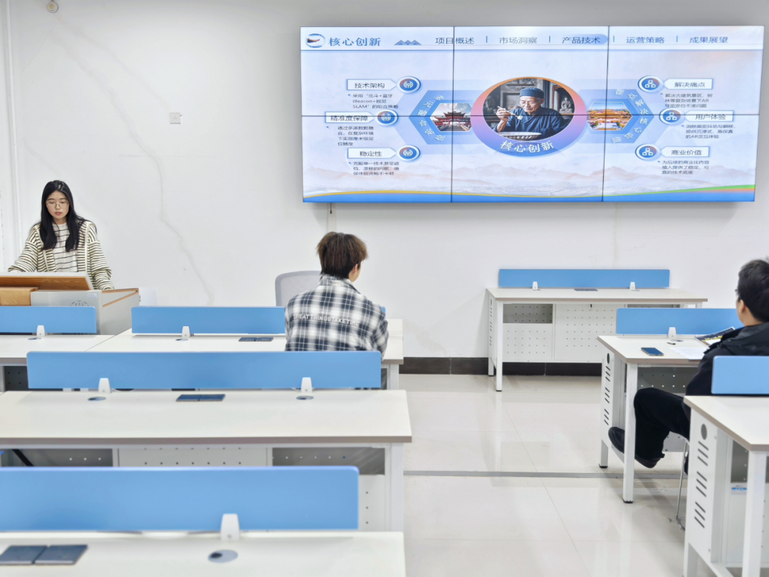 比赛现场,各参赛团队代表依次上台,围绕项目前景、创意设计与创业方案等方面展开阐述。评委老师们认真聆听、细致评审,从项目创新性、可行性、实用性等维度进行点评,既肯定了各团队的创意与努力,也针对性地提出优化建议,为项目提升完善指明方向。